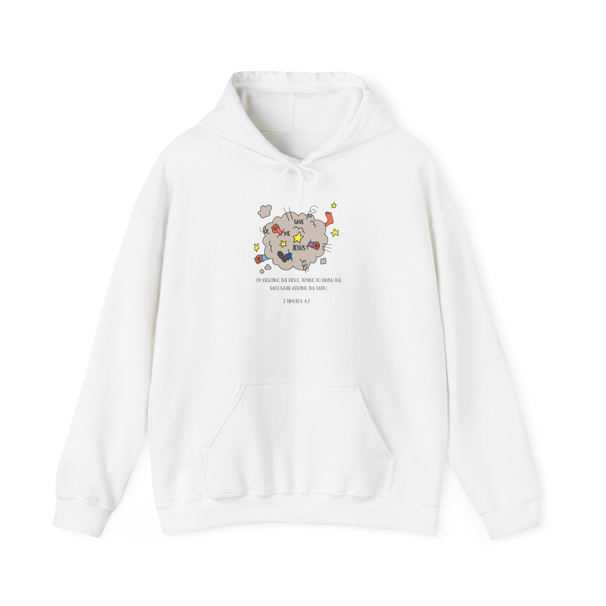 The Fight Continues Hoodie is a reminder that the battle between good and evil isn't over. This hoodie is perfect for those who enjoy unique and thought-provoking designs, making it a great addition to your casual wardrobe while wearing your witness.